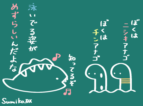 オレンジの線が入っているのがニシキアナゴ