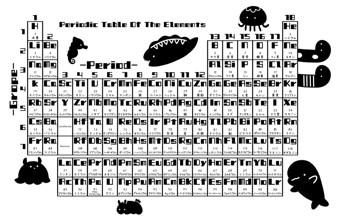 周期表にずらりと並んでいますね↓